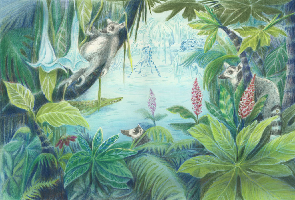 Made with ink, coloured pencil and pastel chalk.